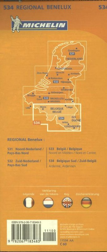 Michelin Wegenkaart 534 België Zuid, Ardennen