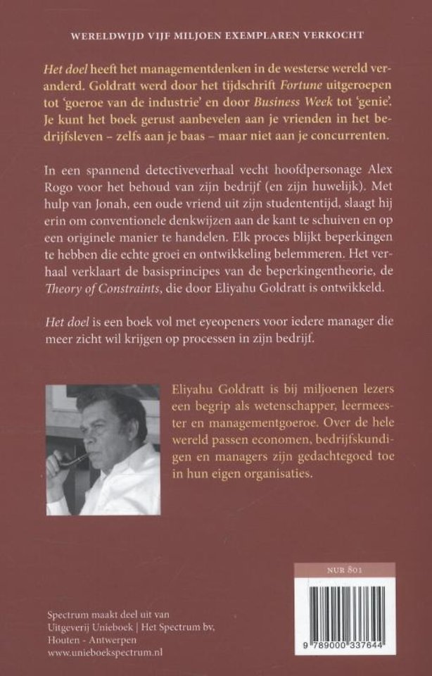 Meer over Eliyahu Goldratt'Het doel' heeft het managementdenken in de westerse wereld veranderd. Goldratt werd door het tijdschrift Fortune uitgeroepen tot 'goeroe van de industrie' en door Business Week tot 'genie'.