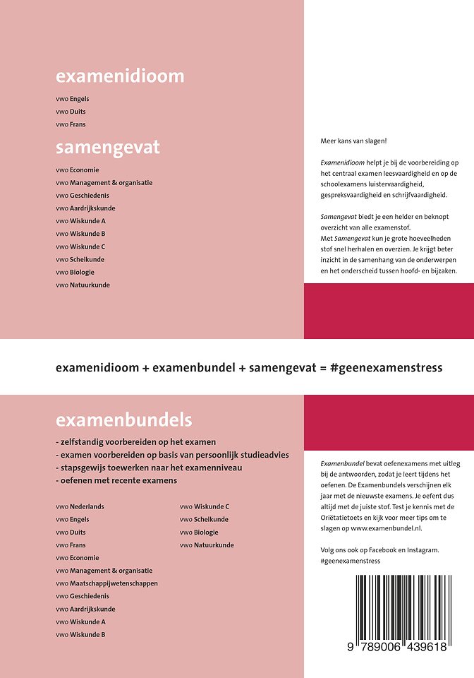 Geen examenstress met Examenidioom! Examenidioom is de nieuwe aanvulling op de Examenbundel en Samengevat. Het Examenidioom biedt de ideale voorbereiding op zowel het centraal schriftelijk als de mondelinge schoolexamens voor je talen. Het boek bevat meer dan 1000 idioomwoorden met reële voorbeeldzinnen.