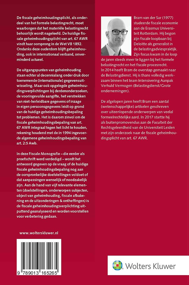 In Fiscale geheimhoudingsplicht: art. 67 AWR ontrafeld wordt antwoord gegeven op de vraag of de huidige fiscale geheimhoudingsbepaling nog aan de oorspronkelijke doelstellingen voldoet of dat aanpassingen wenselijk of zelfs noodzakelijk zijn. Aan de hand van vijf relevante elementen wordt de fiscale geheimhoudingsverplichting uitgebreid geanalyseerd: