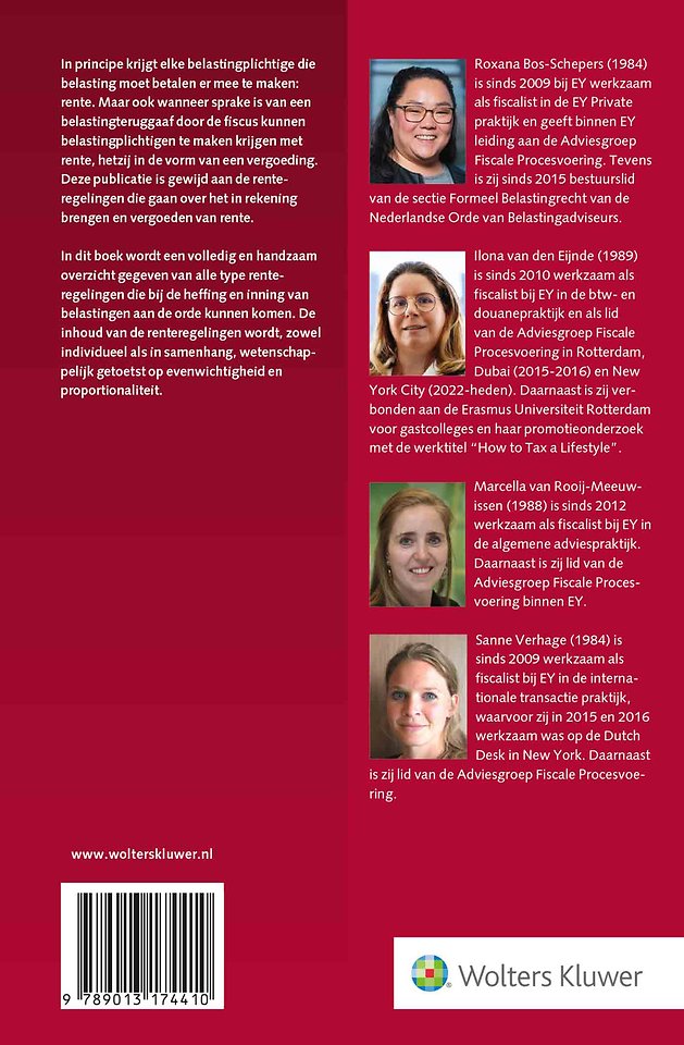 De publicatie sluit aan op de bredere discussie over de rol die rente speelt in de verhouding tussen de belastingplichtige en de fiscus. Het volledige overzicht van alle type renteregelingen die bij de heffing en inning van alle soorten belastingen aan de orde kunnen komen, maakt deze bundel zeer waardevol voor iedere fiscalist, op welk vakgebied dan ook.