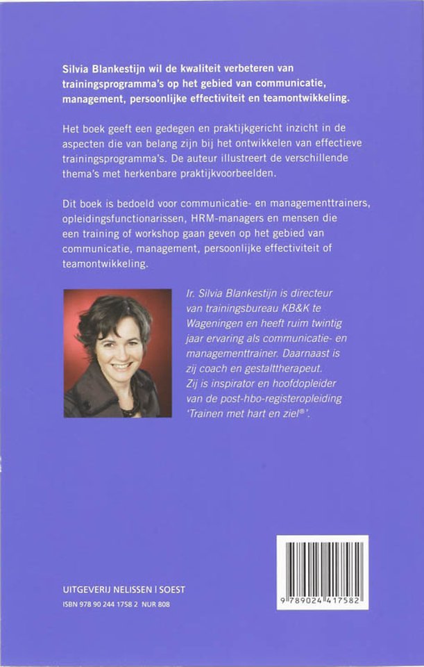 Ir. Silvia Blankestijn is directeur van trainingsbureau KB&K te Wageningen en heeft ruim twintig jaar ervaring als communicatie- en managementtrainer. Daarnaast is zij coach en gestalttherapeut. Zij is inspirator en hoofdopleider van de post-hbo-registeropleiding 'Trainen met hart en ziel'. Bezoek ook de website van Silvia Blankestijn: www.trainersopleiding.nl of www.coachingsopleiding.nl.
