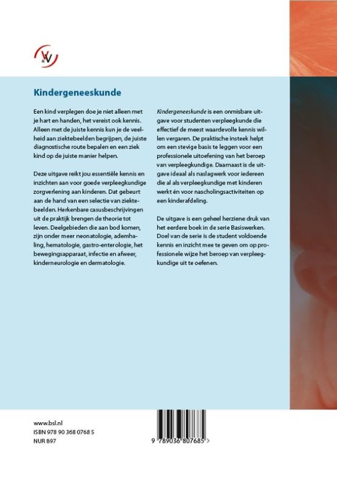 Groei en ontwikkeling spelen een centrale rol in de kindergeneeskunde. In het basiswerk Kindergeneeskunde komt een selectie van ziektebeelden bij kinderen aan bod. Gekozen is voor ziektebeelden die je in de algemene praktijk tegenkomt, maar soms ook voor zeldzamere ziekten die boeiend zijn in uitingsvorm of pathofysiologische achtergrond. Na een algemene inleiding wordtonder meer aandacht besteed aan de deelgebieden neonatologie, ademhaling, hematologie, gastro-enterologie, urologie, endocrinologie, het bewegingsapparaat, infectie en afweer, kinderneurologie en dermatologie.