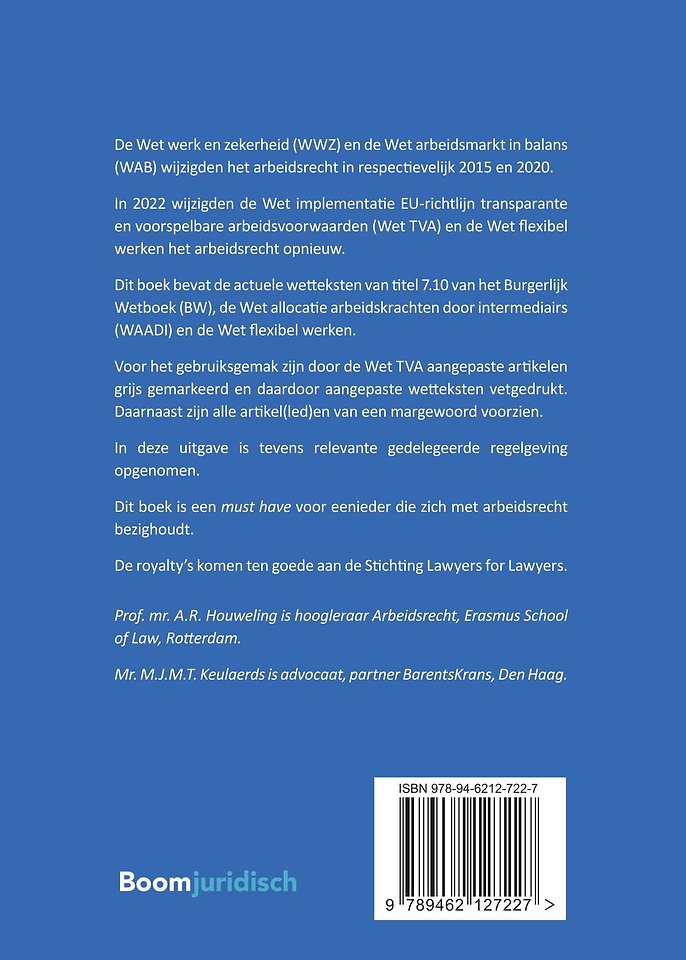 Dit boek bevat de actuele wetteksten van titel 7.10 van het Burgerlijk Wetboek (BW), de Wet allocatie arbeidskrachten door intermediairs (WAADI) en de Wet flexibel werken.