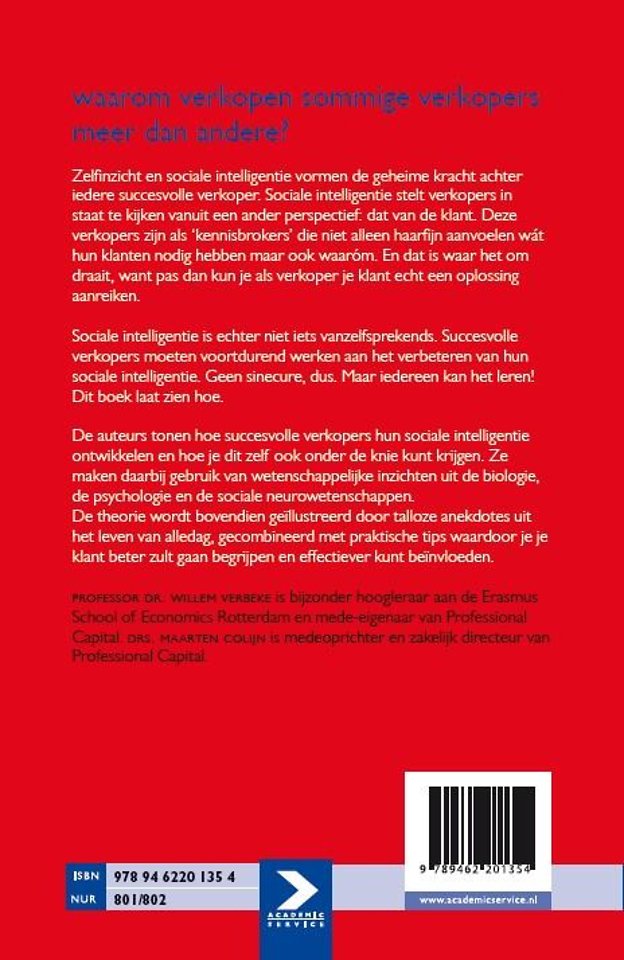 Sociale intelligentie is echter niet iets vanzelfsprekends. Succesvolle verkopers moeten voortdurend werken aan het verbeteren van hun sociale intelligentie. Geen sinecure, dus. Maar iedereen kan het leren! Dit boek laat zien hoe.