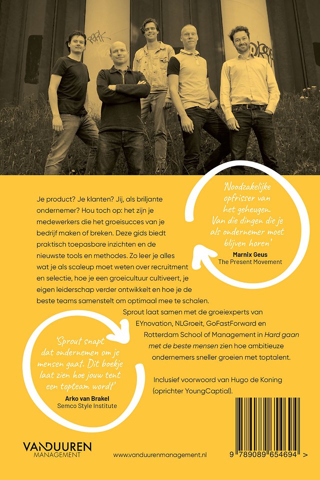De Sprout Groeigids leert je zo alles wat je moet weten over state of the art recruitment, een rake selectie en een beloning die past bij een groeibedrijf. Je leert met deze gids ook hoe je een groeicultuur cultiveert, hoe je je eigen leiderschap verder ontwikkelt en hoe je de beste teams samenstelt. En vooruit, omdat niet alles rozengeur en maneschijn is, zetten we er ook op in dat je mensen als ware ambassadeurs je bedrijf weer verlaten.