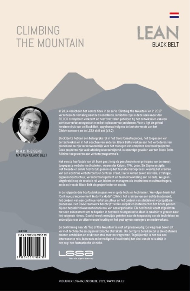 In 2014 verscheen het eerste boek in de serie 'Climbing the Mountain' en in 2017 verscheen de vertaling naar het Nederlands. Inmiddels zijn in deze serie meer dan 35.000 exemplaren verkocht en heeft het velen geholpen bij het ontwikkelen van een continue verbeterorganisatie en het oplossen van problemen. Voor u ligt de geheel herziene druk van de Green Belt, opgebouwd volgens de laatste versie van het CIMM-raamwerk en de LSSA skill set (v3.2).
