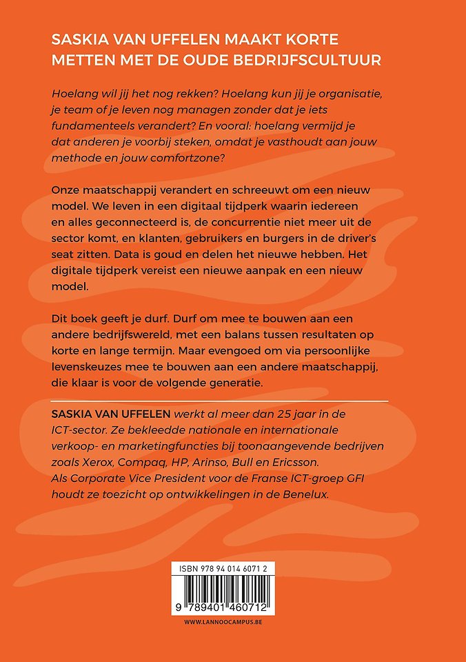 Hoe verander je de cultuur in je organisatie van passief naar participatief? Hoe kun je het kortetermijnhandelen doorbreken? Hoe bouwen bedrijven en individuen samen aan een maatschappij op maat van de digitale wereld? En hoe doen we dat met een maximum aan welvaart én welzijn? Dat en nog meer vind je in dit nieuwe boek van Saskia Van Uffelen.