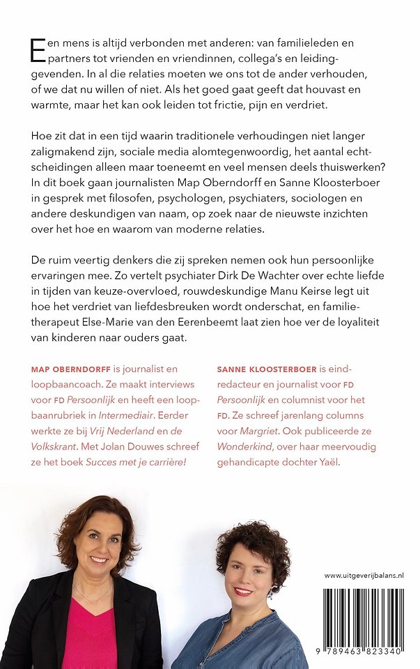 Meer over de auteursEen mens is altijd verbonden met anderen: van familieleden en partners tot vrienden en vriendinnen, collega’s en leidinggevenden. In al die relaties moeten we ons tot de ander verhouden, of we dat nu willen of niet. Als het goed gaat geeft dat houvast en warmte, maar het kan ook leiden tot frictie, pijn en verdriet.